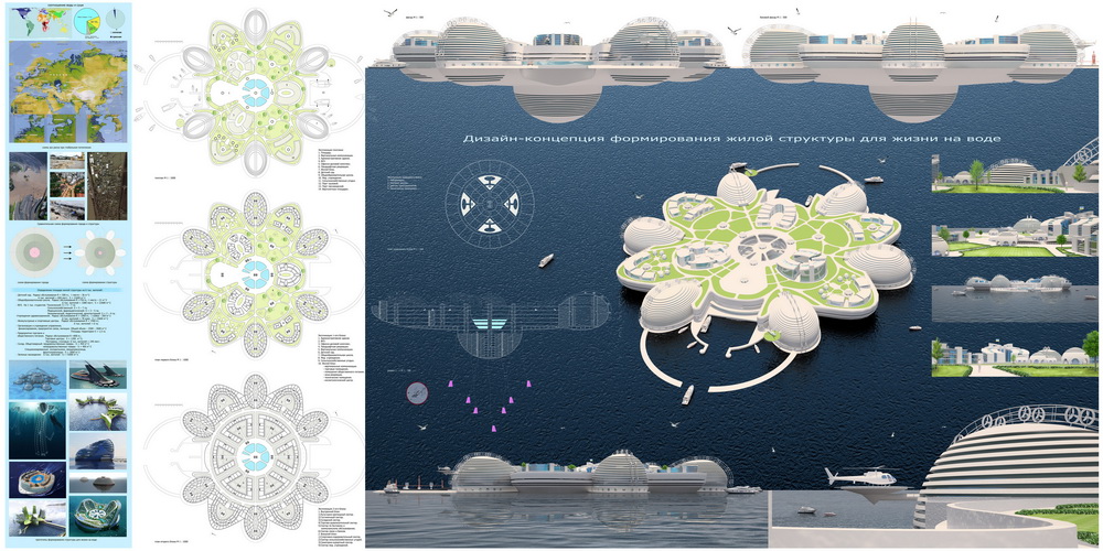 Конкурсная работа Юровой Анны. Жилая структура для жизни на воде. Харьков, Украина.