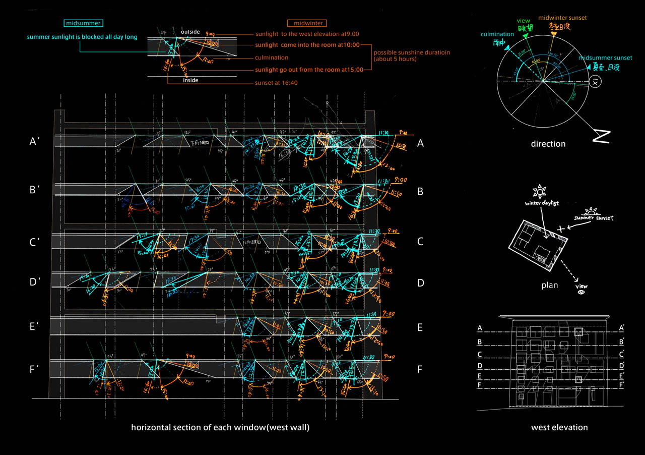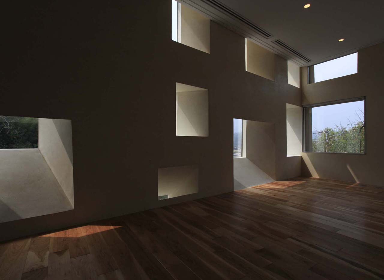 Также для ниш, в которые заключены окна, характерен разный наклон. Данное решение помогает фильтровать свет в разное время суток и в разные поры года.