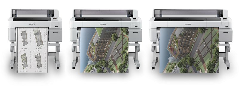 В 2012 году компания Epson выпустила сразу несколько моделей новых широкоформатных принтеров. Для ежедневной широкоформатной печати на различных носителях с покрытием и без подойдут четырехцветные принтеры Epson SureColor SC-T7000 (44’’), Epson SureColor SC-T5000 (36’’), Epson SureColor SC-T3000 (24’’). С помощью данных устройств можно быстро и эффективно распечатывать архитектурные и инженерные чертежи, карты, презентации, постеры и баннеры, используемые в помещении.