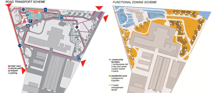 The concept of our project is forming habitation round the public center, the place of an attraction of people, trade, rest and work. It is an important factor for development of economy, a self- sufficiently of inhabitants of quarter during disasters.