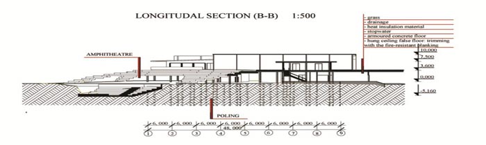 Delicacy of our project consists that we don’t break a natural relief, we create the multipurpose space connected in surrounding existing building, and also about placing in the first level of the public zone including kitchen gardens, parking’s, cafe – dining rooms and floor spaces and in top – inhabited, and also public serving habitation.