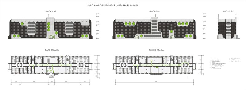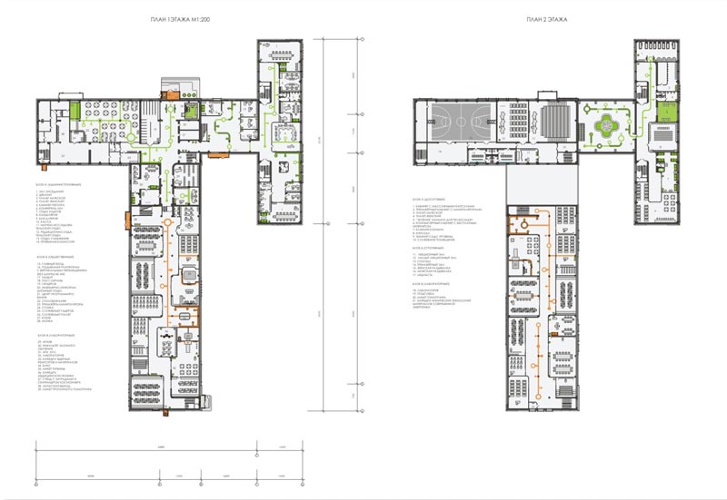 - общественный, административный и досуговый блоки – зелёный,