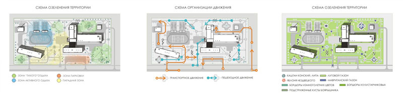 Новую планировку территории университета можно разделить на 4 зоны: