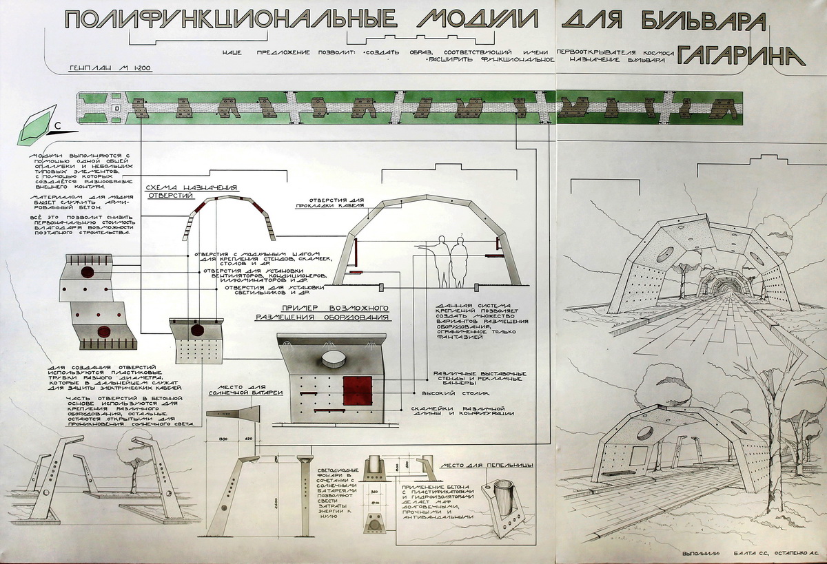 Конкурсная работа Остапенко Анны и Балта Сергея. Полифункциональные модули для бульвара Гагарина. Тирасполь, Молдавия.