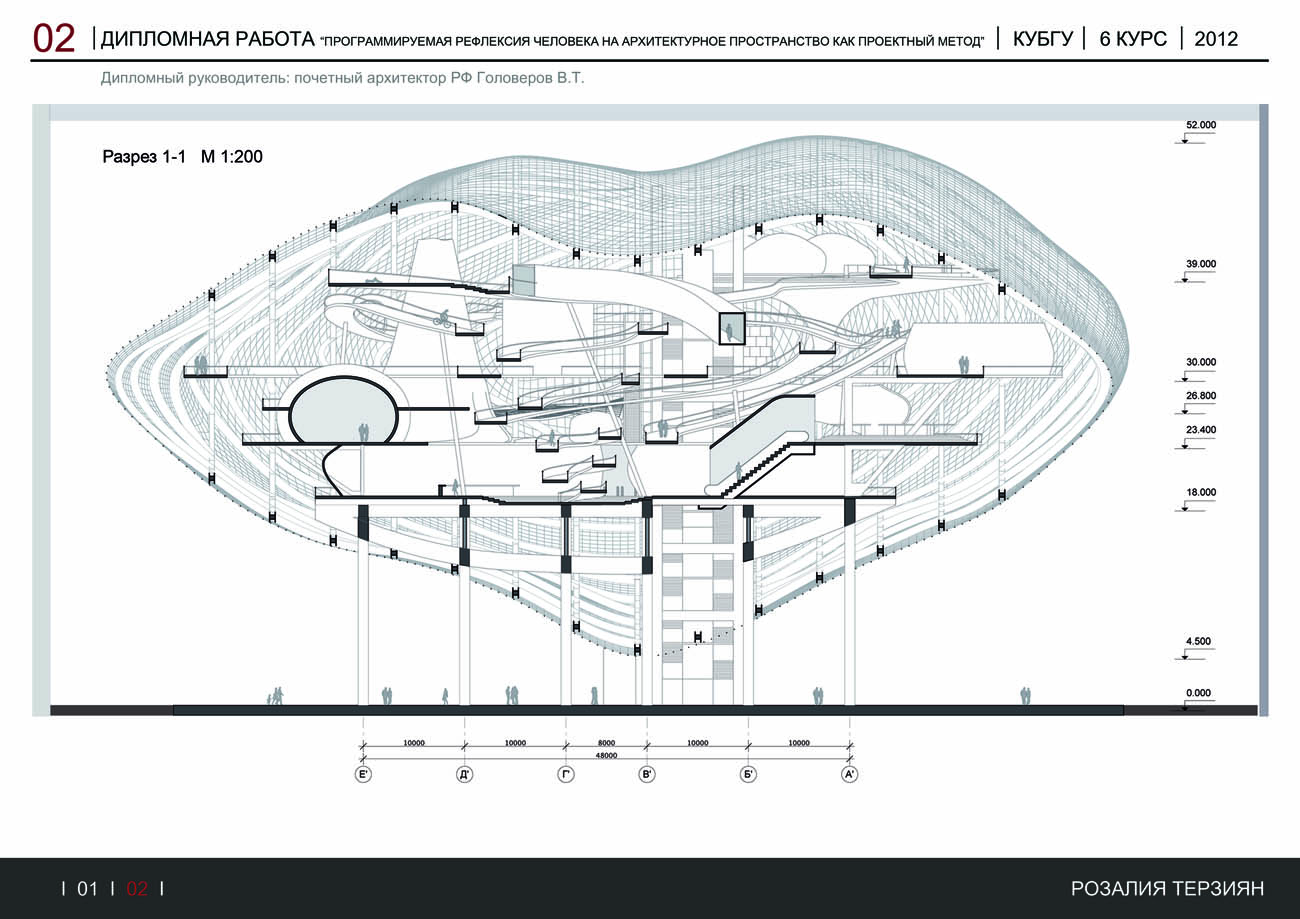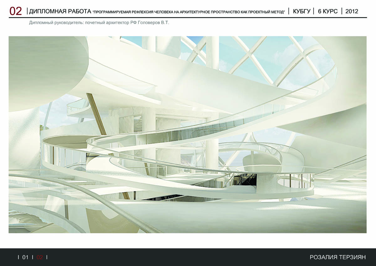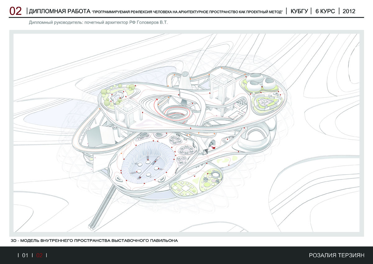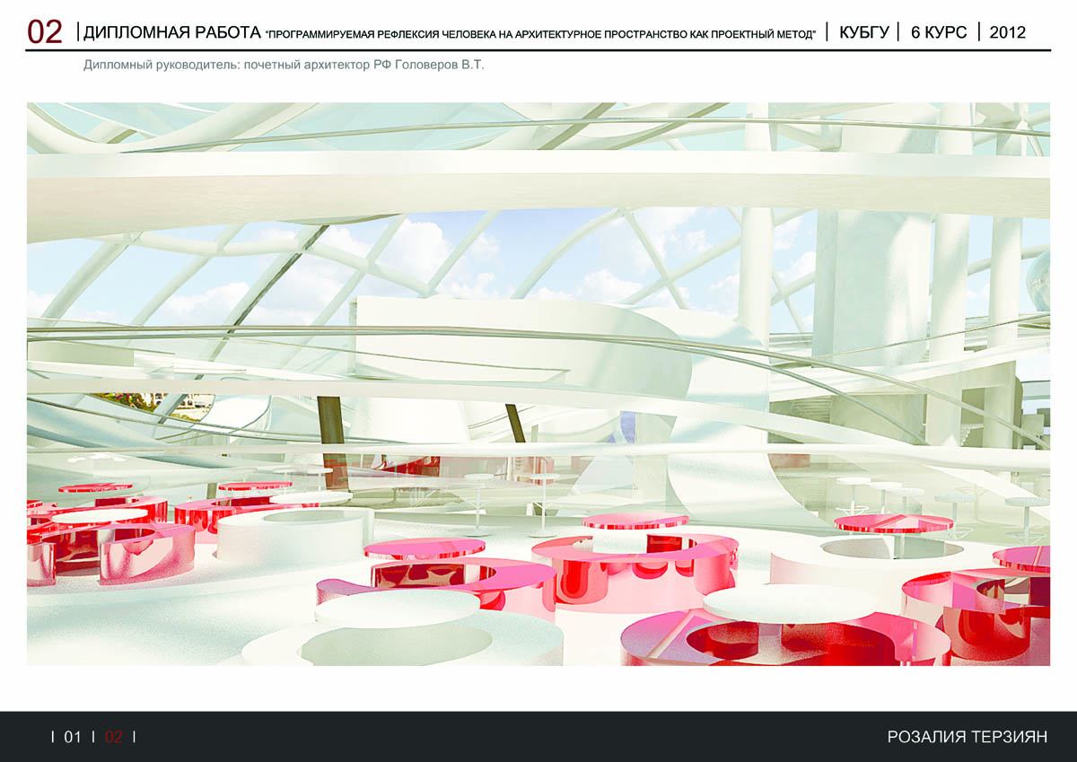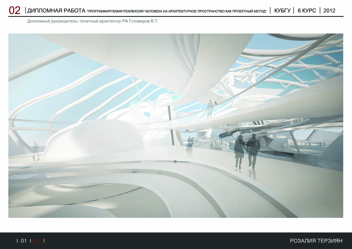 Конкурсная работа Терзиян Розалии. Программируемая рефлексия человека на архитектурное пространство как проектный метод на основе выставочного павильона.