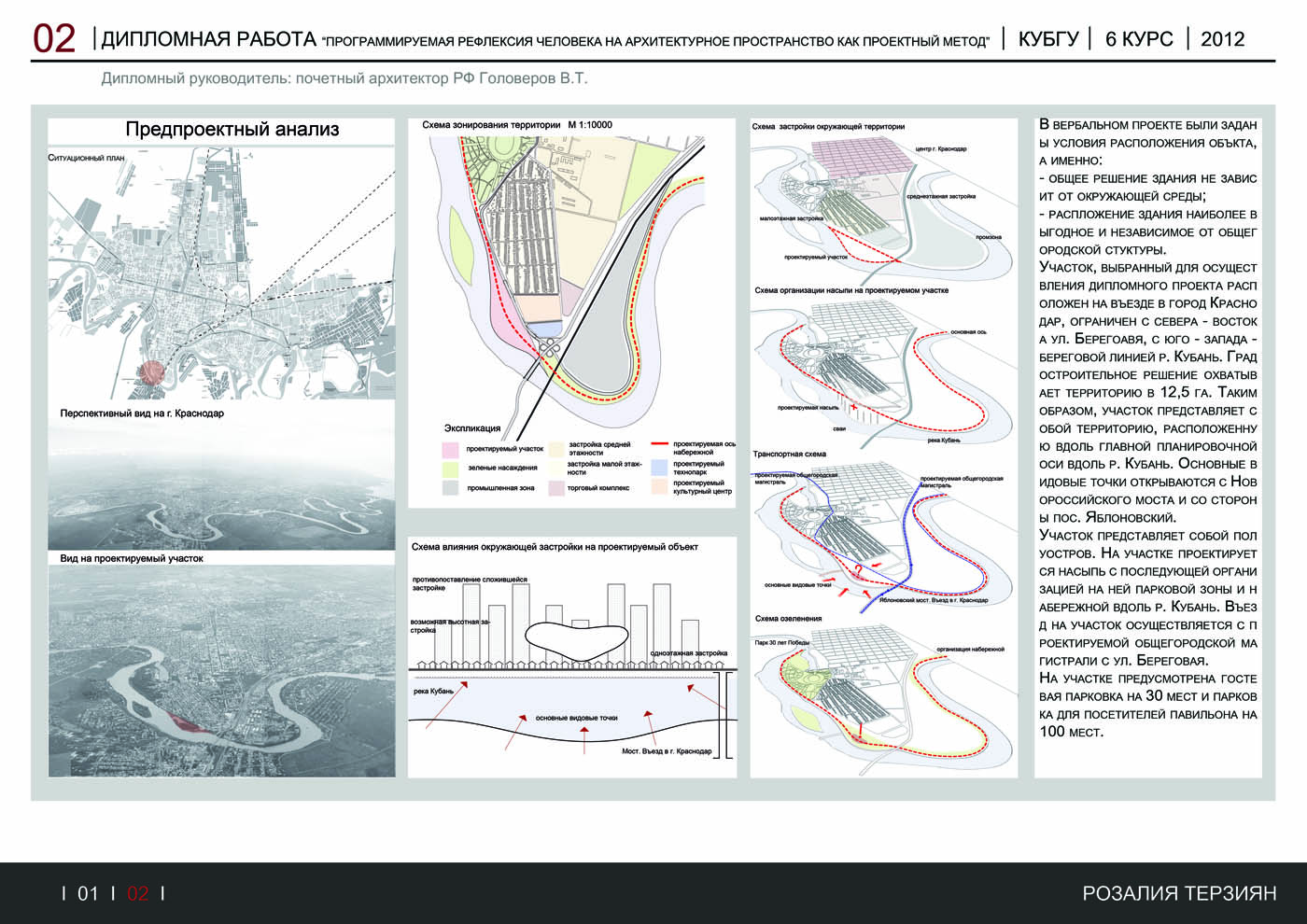 Настало время конкурсной работы под номером 209. Выпускница факультета Архитектуры и Дизайна Кубанского государственного университета Розалия Терзиян прислала на Архиконкурс 2012 работу на тему «Программируемая рефлексия человека на архитектурное пространство как проектный метод на основе выставочного павильона». Поделитесь своим мнением о проекте в соц. сетях.