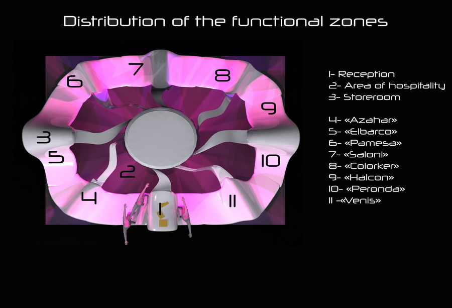 Путем поисков образа, я пришел к идее использования плоскостей складок для демонстрации плиток, окружающих внутреннее пространство зоны гостеприимства.