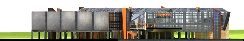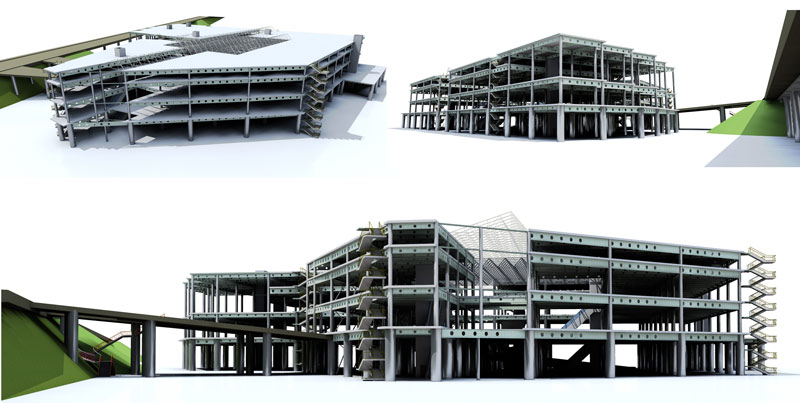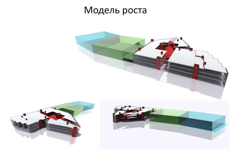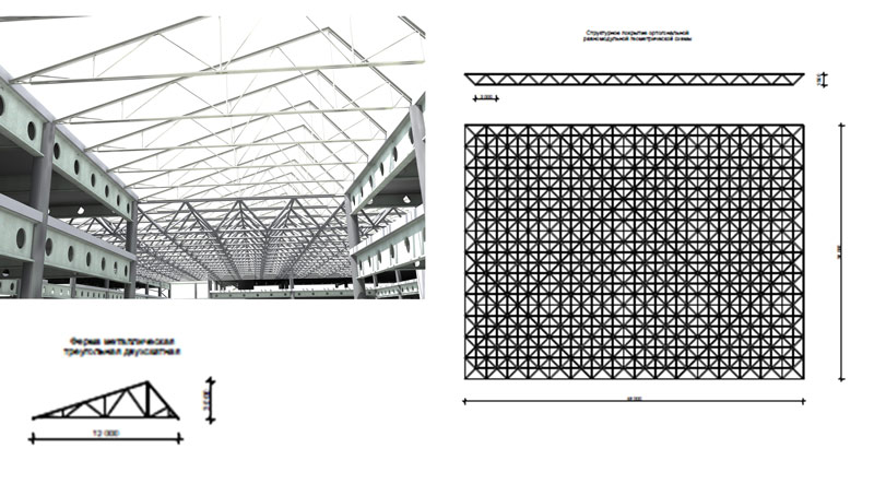 Модульная структура, представляющая собой стальную каркасную конструкцию, что обеспечивает устойчивость, экономичность, гибкость, легкость монтажа и демонтажа, полифукциональность и адаптивность в использовании пространства.
