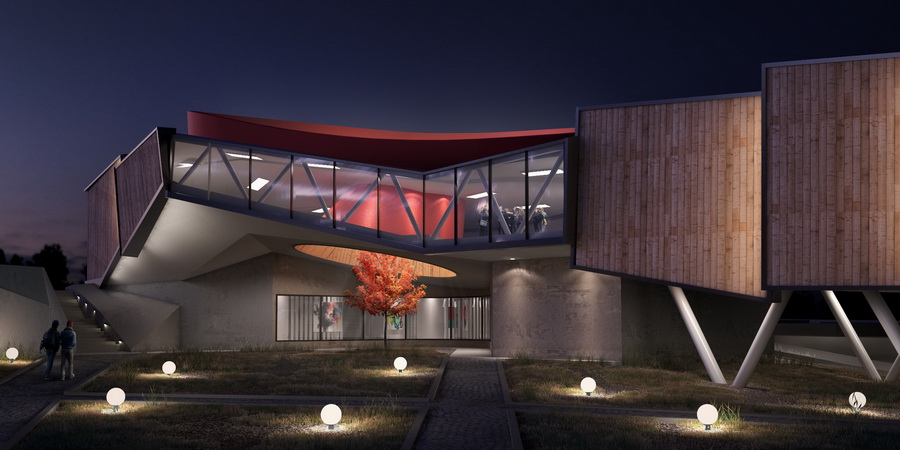 Клуб проектировался для небольшого посёлка на 2000 жителей. Назначение посёлка во многом определяло функциональность сооружения. По заданию положение населённого пункта было вблизи так называемого “IT-центра” – небольшого современного научно-исследовательского города, который должен стать полюсом экономического развития.