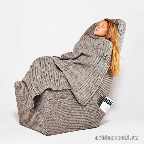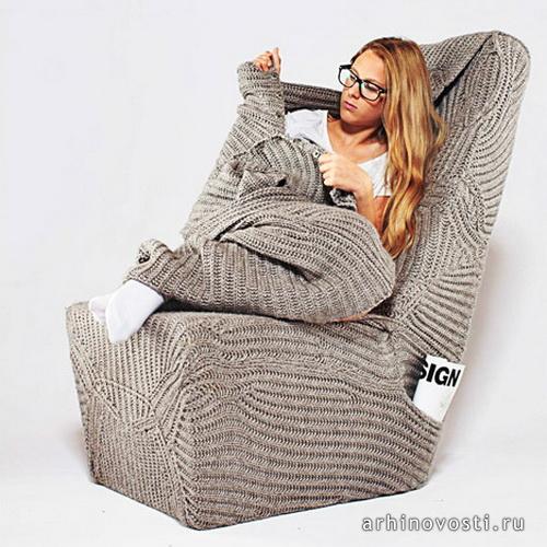 Стул похож на огромный свитер, в который можно закутаться в дождливый осенний вечер и почитать книжку или морозной зимой насладиться чашкой горячего чая.