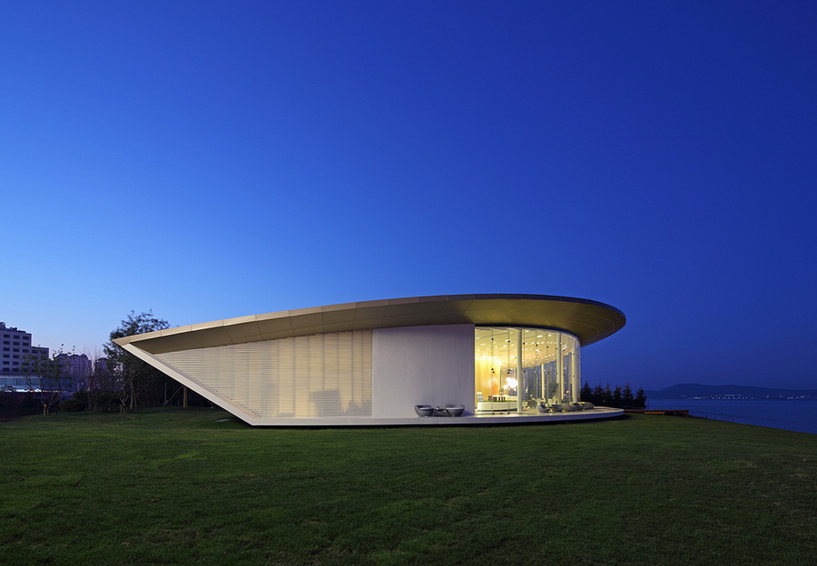 В прошлом году архитектурное бюро Make Architects объявило об окончании строительства своего первого здания на территории континентального Китая. Большой выставочный павильон Weihai был построен на берегу моря в городе Вэйхай на полуострове Шаньдун. Эффектное выставочное пространство предназначено для того, чтобы предоставить информацию о развитии жилищного строительства на полуострове.