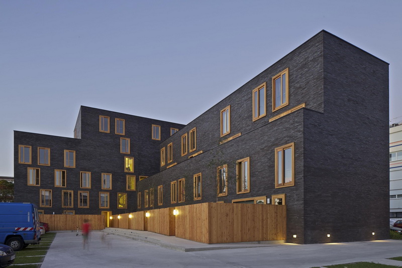 Достаточно привлекательное социальное жильё появилось в 2012-ом году в небольшом французском городке Бетюн. Чёрный стены с акцентами из окон, обрамлённых деревянными элементами, формируют запоминающийся облик дома. Над проектом работали специалисты из архитектурной компании FRES Architectes.