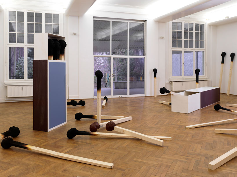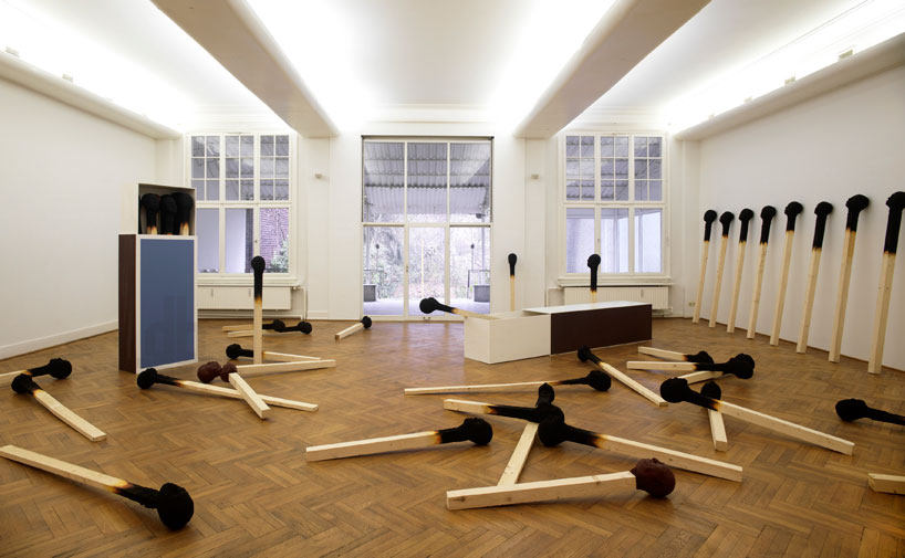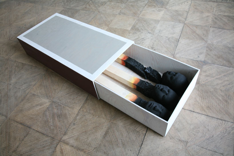 Скульптуры-спички имеют высоту примерно в человеческий рост. Некоторые из них стоят, прислонившись своими головами с закрытыми глазами к стенам. Другие нашли покой, лёжа в спичечных коробках-гробах.