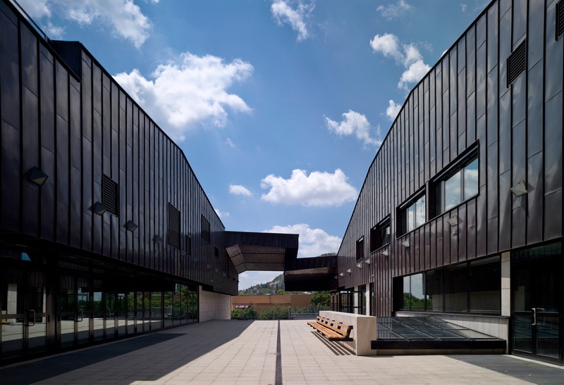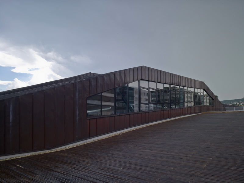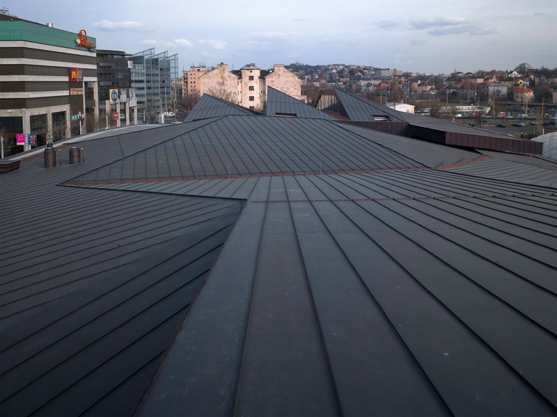 Необычную форму сооружению придаёт крыша, которая состоит из множества граней, покрытых медными панелями. Эти грани могут соединяться друг с другом, образуя непрерывную плоскую поверхность. А могут неожиданно подниматься, образуя новые окна.
