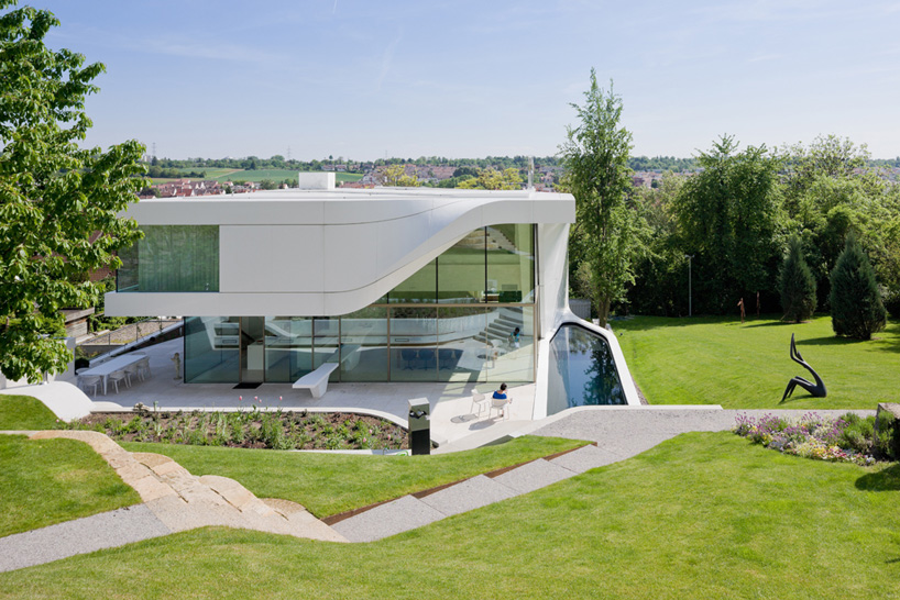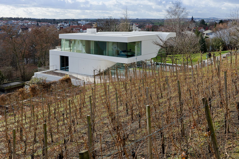 Эта белая вилла на окраине Штутгарта, Германия, была спроектирована архитекторами из компании UNStudio. Объект получил название «Haus am Weinberg» (Дом у виноградника), которое действительно описывает его реальное расположение: на возвышенности над ним разбит виноградник, который можно увидеть прямо из окон здания.