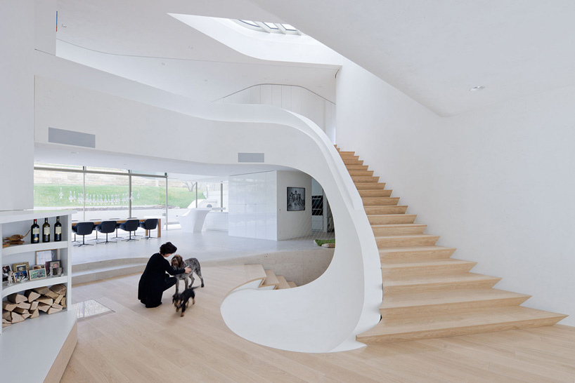 Изгибы можно заметить не только в экстерьере, но и в интерьере здания. Так, закручивающаяся лестница помогает разделить внутреннее пространство дома на отдельные функциональные зоны.