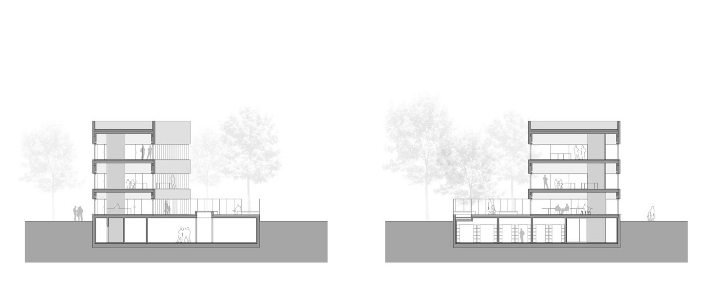 Узкое длинное здание будет возвышаться над землёй на три этажа. Под землёй будет расположен дополнительный этаж.