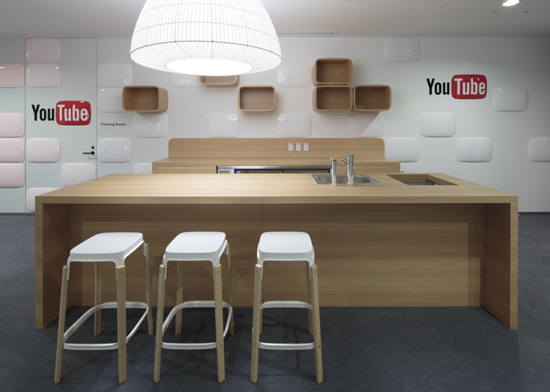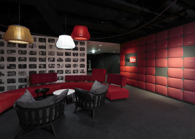 В Токио, Япония, появилась новая студия YouTube Space, которая позволит талантливым создателям видео вывести свои работы на новый уровень. Специалисты из компании Klein Dytham Architecture занимались оформлением интерьера студии. Одним из основных элементов, с помощью которых был создан уникальный дизайн помещений, стали панели, напоминающие по форме логотип компании YouTube.