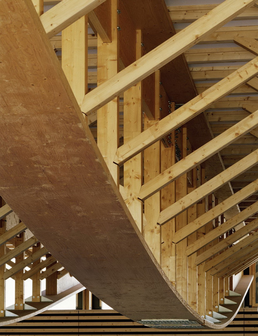 Если смотреть на здание сверху, то его можно не сразу заметить, так как благодаря зелёной крыше, покрытой растениями, оно немного теряется среди холмистой местности.