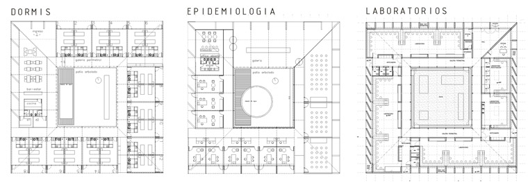 В первом здании расположен центр эпидемиологии. Второе здание отдано под лабораторию. Третье здание взяло на себя роль общежития.