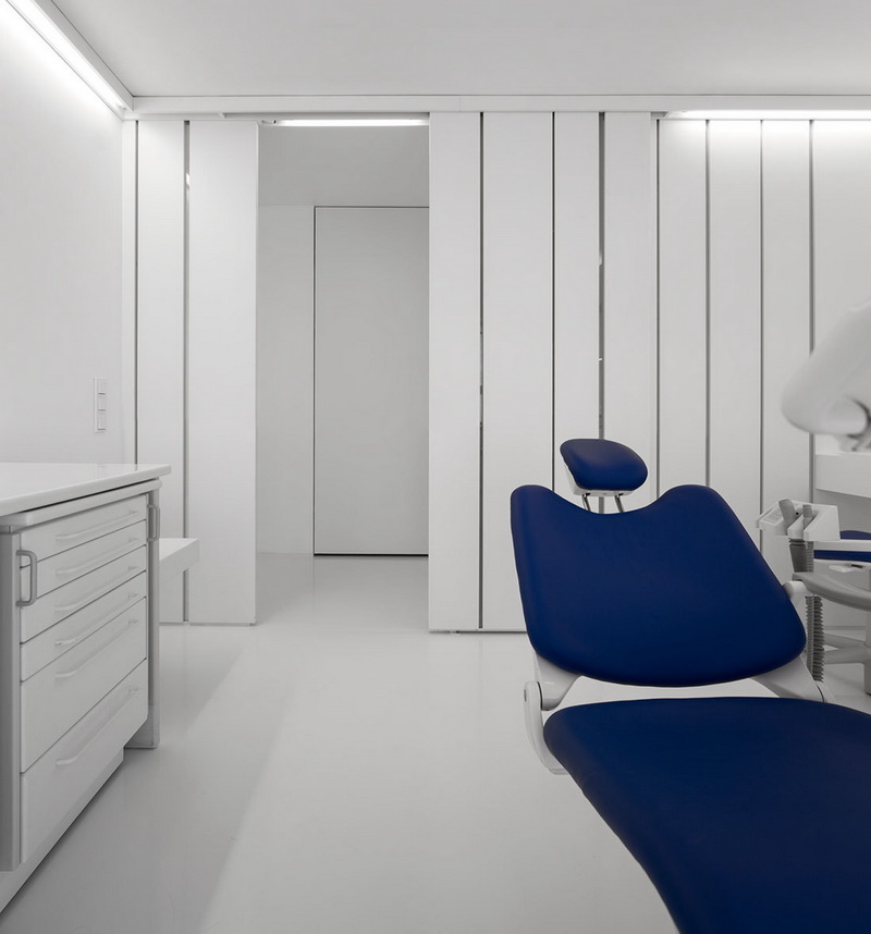 Специалисты из архитектурной компании MMVARQUITECTO получили заказ на оформление интерьера стоматологической клиники, расположенной на первом этаже обыкновенного здания в центре португальского города Торриш-Ведраш. В результате плодотворной работы клиника обрела своё привлекательное выдержанное «я».