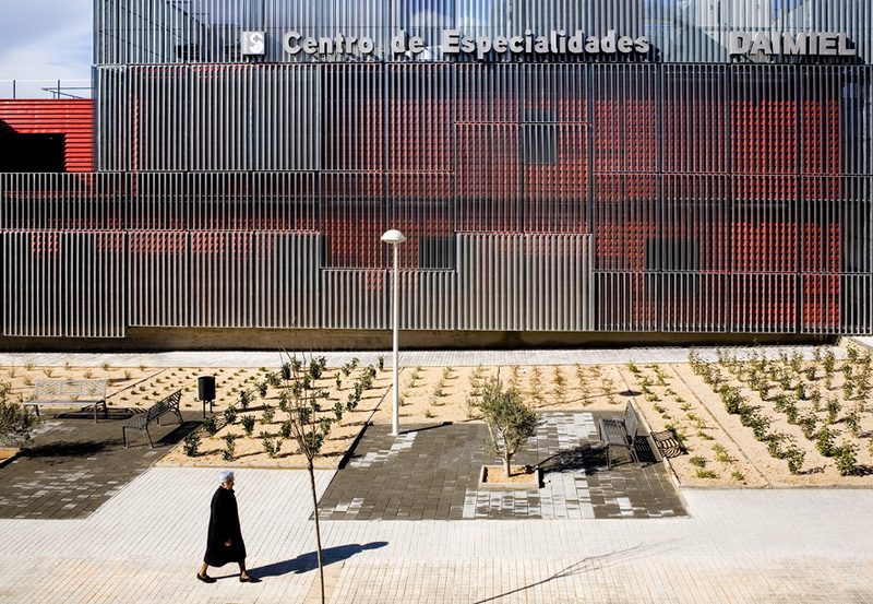 В испанском городе Даймьель расположен центр медицинской помощи «CEDT Daimiel», здание для которого было спроектировано специалистами из архитектурной компании Estudio Entresitio. В процессе создания данного объекта архитекторы уделили особое внимание удобству планировки, а соответственно и созданию эффективной системы перемещения медицинского персонала и пациентов внутри здания, которая позволила бы не теряли драгоценное время в хитросплетениях коридоров и проходов.