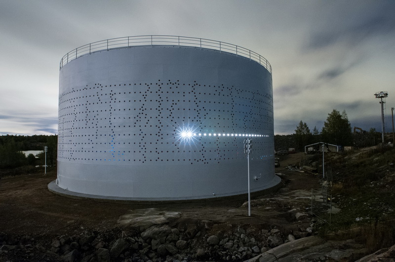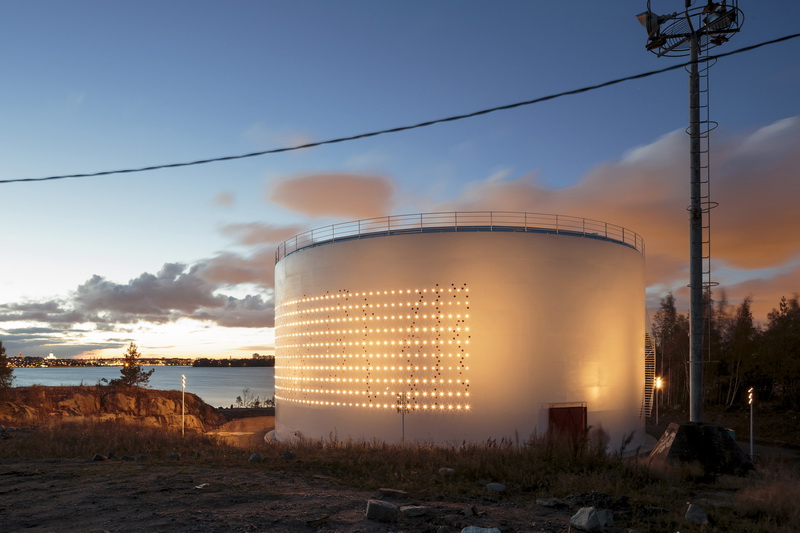 Совсем недавно мы писали о том, что промышленный резервуар можно превратить в интересную акустическую инсталляцию, а теперь настало время превращения аналогичного строения в световую инсталляцию. Произошло это перевоплощение в Хельсинки, Финляндия, благодаря усилиям специалистов из мадридской студии Lighting Design Collective (LDC).