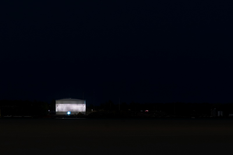 За отверстиями резервуара было установлено 1280 светодиодных элементов. Всего 10 рядов по 128 элементов. Свет от них можно увидеть за несколько километров от здания.