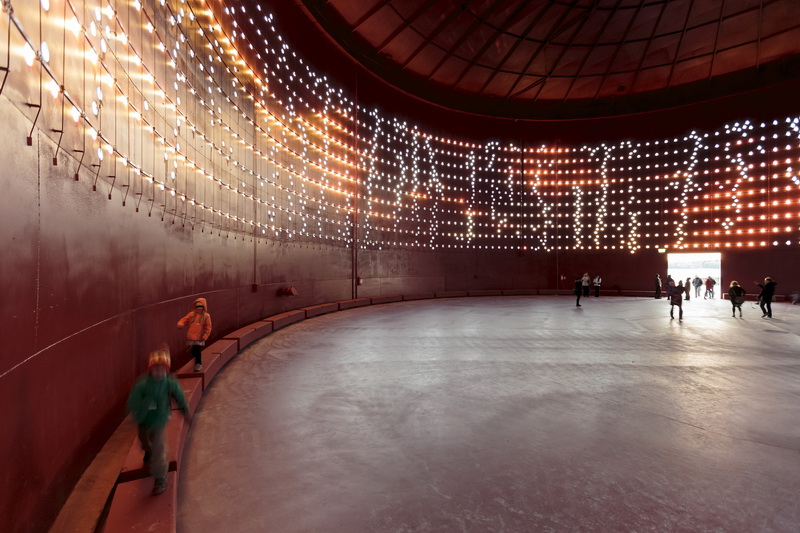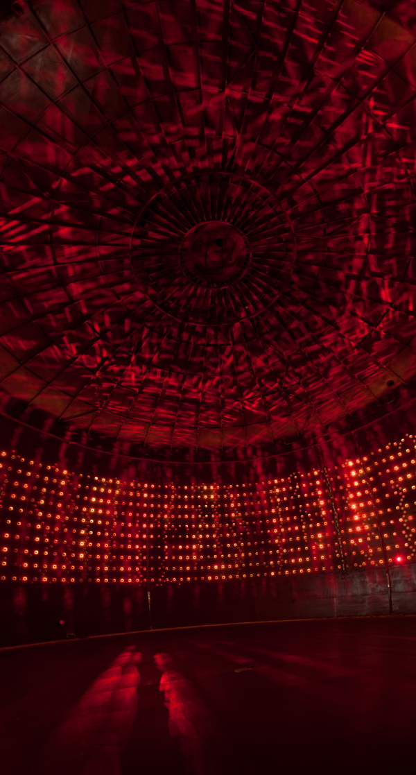 В полночь освещение на час становится красным. Данный цвет – дань прошлому резервуара (он был предназначен для хранения нефти, а значит и энергии, спрятанной в ней).