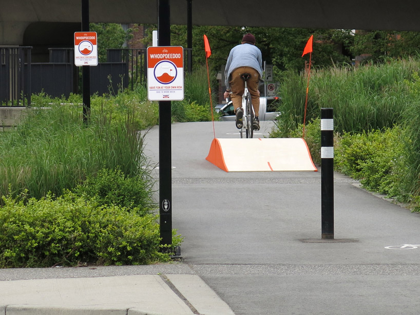 Если в вашем городе развита велосипедная инфраструктура, и вы привыкли ежедневно ездить на велосипеде на работу по одним и тем же велодорожкам, это на первый взгляд достаточно приятное времяпрепровождение может превратиться в рутину… Как с этим бороться? Канадский дизайнер Грег Папове (Greg Papove) нашел один из ответов на этот вопрос. Расположен этот привлекательный ответ под названием «WhoopDeeDoo» в городе Ванкувер, Канада.
