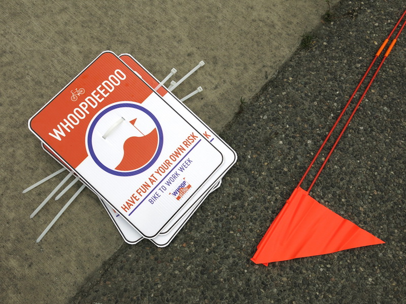 Рампы обозначены флажками, которые помогают велосипедистам лучше чувствовать габариты конструкции. Кроме того, флажки создают ощущение соревнования, в рамках которого нужно преодолеть определённое количество контрольных точек.
