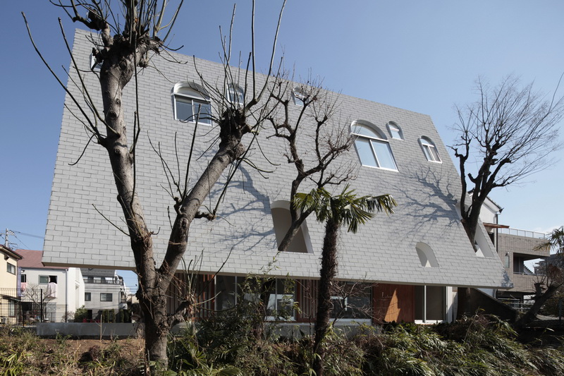 На первый взгляд может показаться, что это не дом, а одинокая крыша с окнами. На самом деле под огромной крышей всё же прячется жилой дом. Авторами этого проекта, который был реализован в Японии в Бункё, одном из районов Токио, являются специалисты из японской архитектурной фирмы ON design partners.