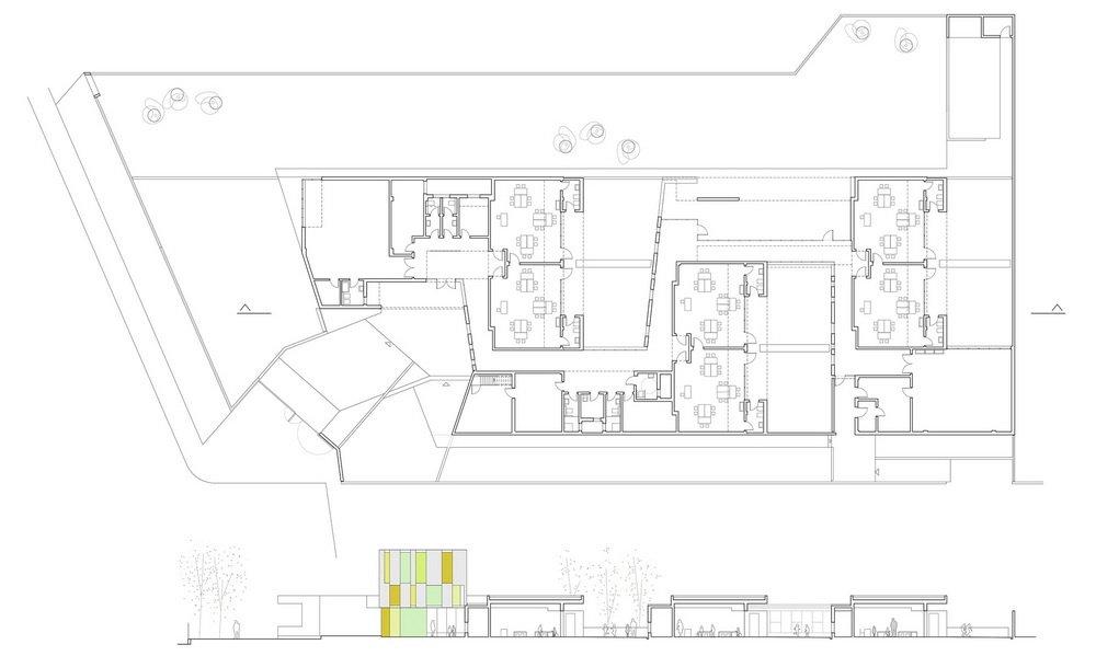Все помещения были размещены на одном этаже. Благодаря этому удалось тесно связать их с игровой площадкой.