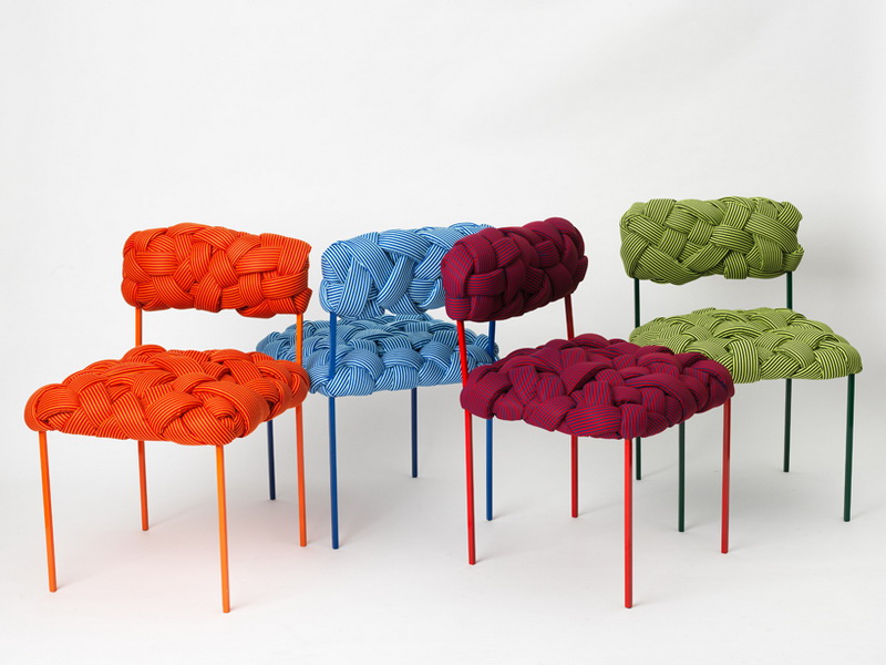 Основой проекта стала особая технология переплетения, с помощью которой создаются сиденья и спинки предметов мебели из данной коллекции.
