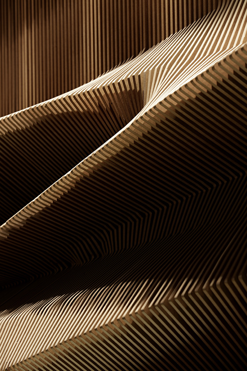 Рисунок, который образуют деревянные элементы стены, напоминает дым арабских благовоний.