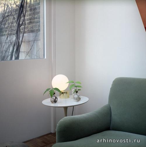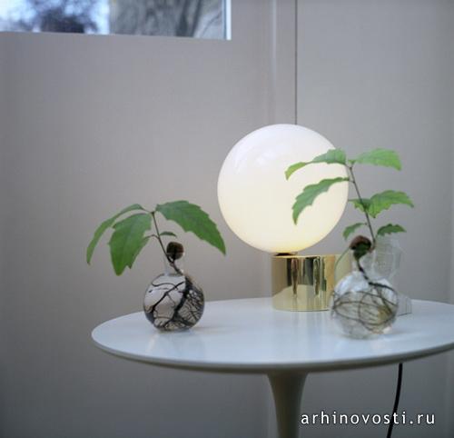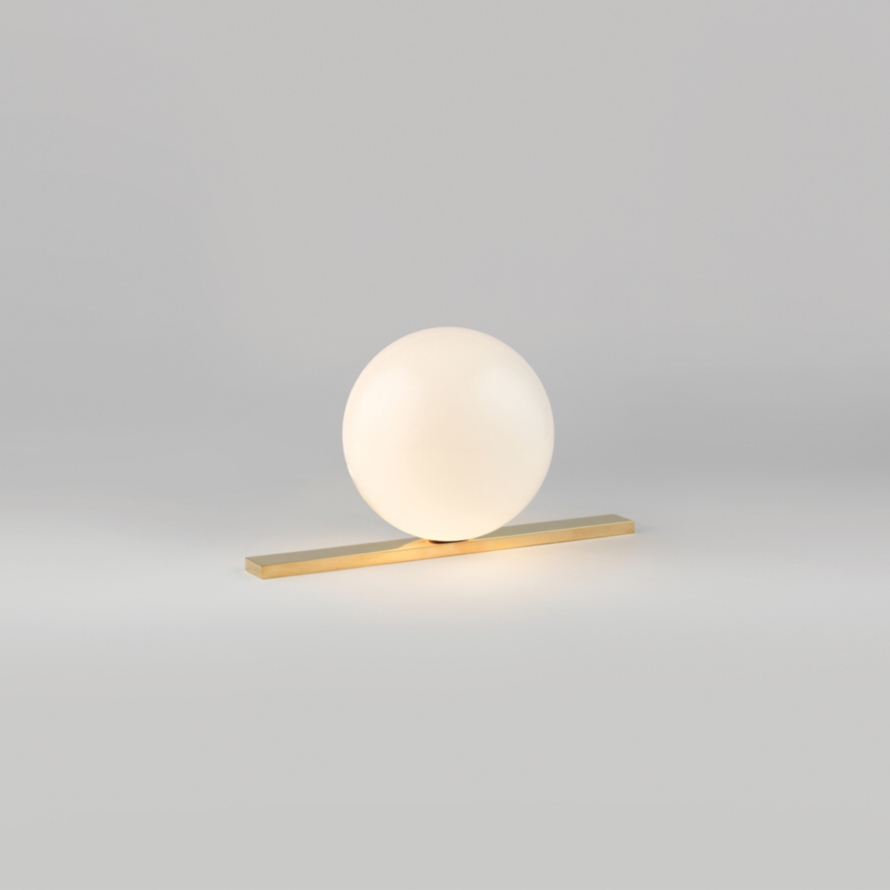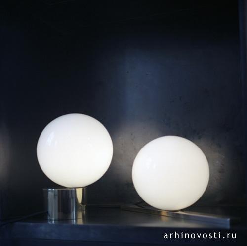 Шар сделан из матового белого стекла, а «золотое» блестящее основание – из латуни.