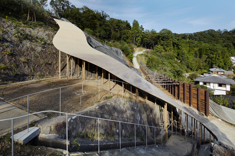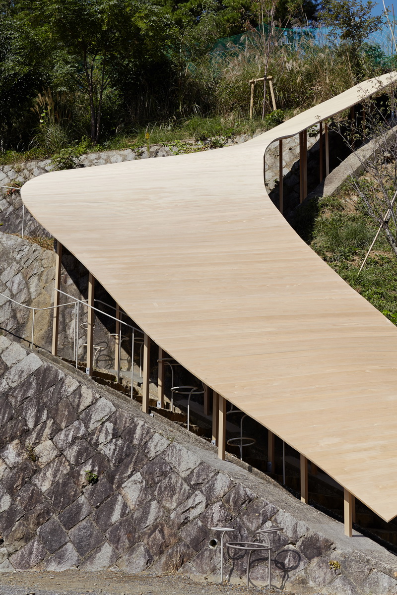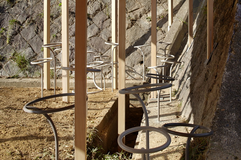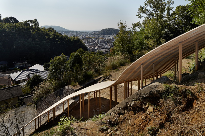 На территории Киотского университета искусства и дизайна на крутом склоне среди густой растительности был построен небольшой павильон.