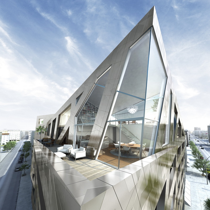 Компания Studio Daniel Libeskind совсем недавно представила на суд общественности свой новый проект жилого здания для угловой площадки в центре Берлина, Германия. Согласно задумке архитекторов дом должен быть «одет» в металлизированный керамогранит. А стены здания будут изогнуты так, чтобы в квартиры попадало максимально возможное количество солнечного света.
