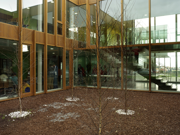 В здании продумано несколько открытых внутренних двориков.