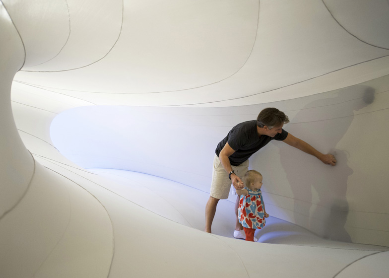 Трубы-туннели сделаны из огромных кусков лайкры. Внутри туннель разделён на две части, которые имеют одну общую стену.