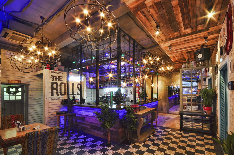 Данный проект был задуман как современное место для молодёжи, которая уже насытилась минимализмами, аккуратностью и стандартными решениями общественных заведений. Стилистической особенностью кафе ROLLS №1 является, конечно же, эклектика, тщательно спланированная и организованная. Основное направление заведения – американская кухня: это различные гамбургеры, пирожные, кофе; также в нём интересно раскрыта тайская и японская кухня.