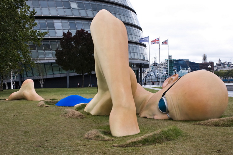 Выше: Необычная скульптура пловца. Лондон, Великобритания.