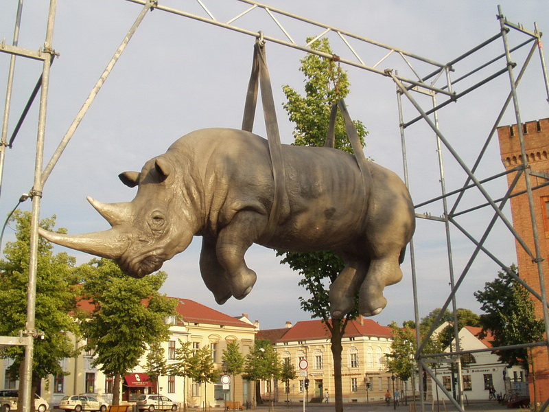 Выше: Скульптура подвешенного носорога. Потсдам, Германия.