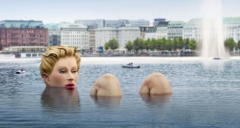 Выше: Гигантская скульптура купальщицы. Гамбург, Германия.