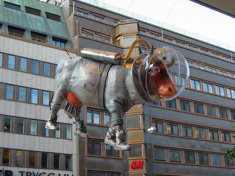 Выше: Памятник космической корове. Стокгольм, Швеция.