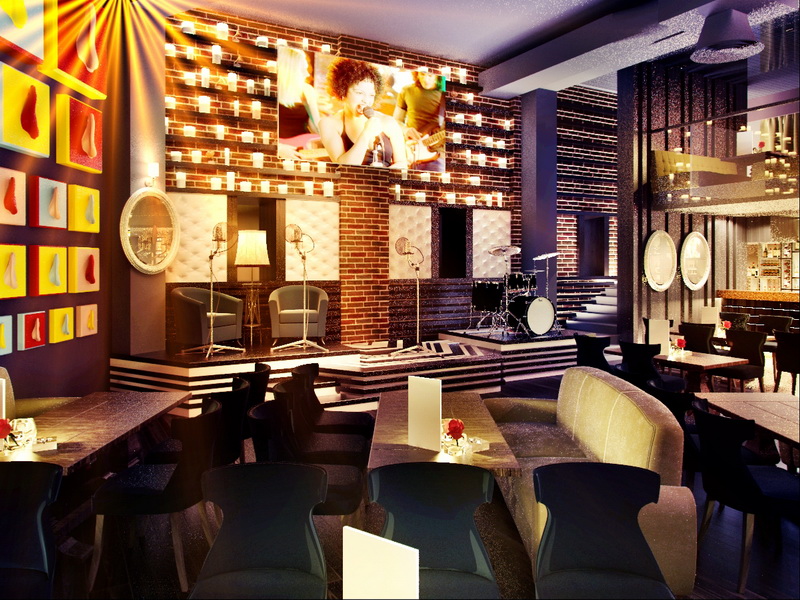 Синтез красного кирпича и живой музыки превращает здание в своего рода музыкальный храм. В идейном смысле караоке-центр является его сердцем – стена за сценой оформлена большим количеством свечей, что вызывает ассоциации с алтарём.