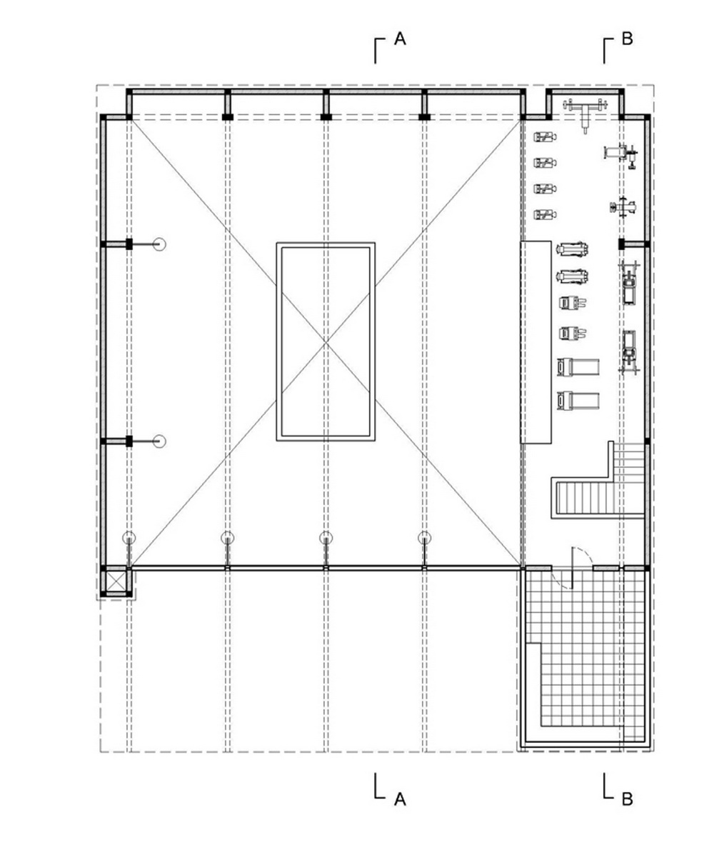 На первом этаже спортивного объекта расположен боксёрский ринг. Место на втором этаже было отдано под тренажерный зал и террасу для индивидуальных тренировок.