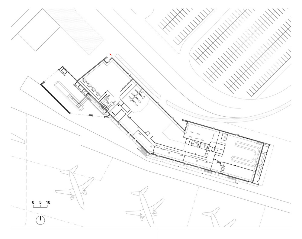 Основой проекта стал компактный объём, внутрь которого поступает достаточно большое количество солнечного света. Пространство внутри здания получилось функциональным и гибким, благодаря чему с течением времени его можно будет адаптировать под различные конкретные нужды аэропорта.