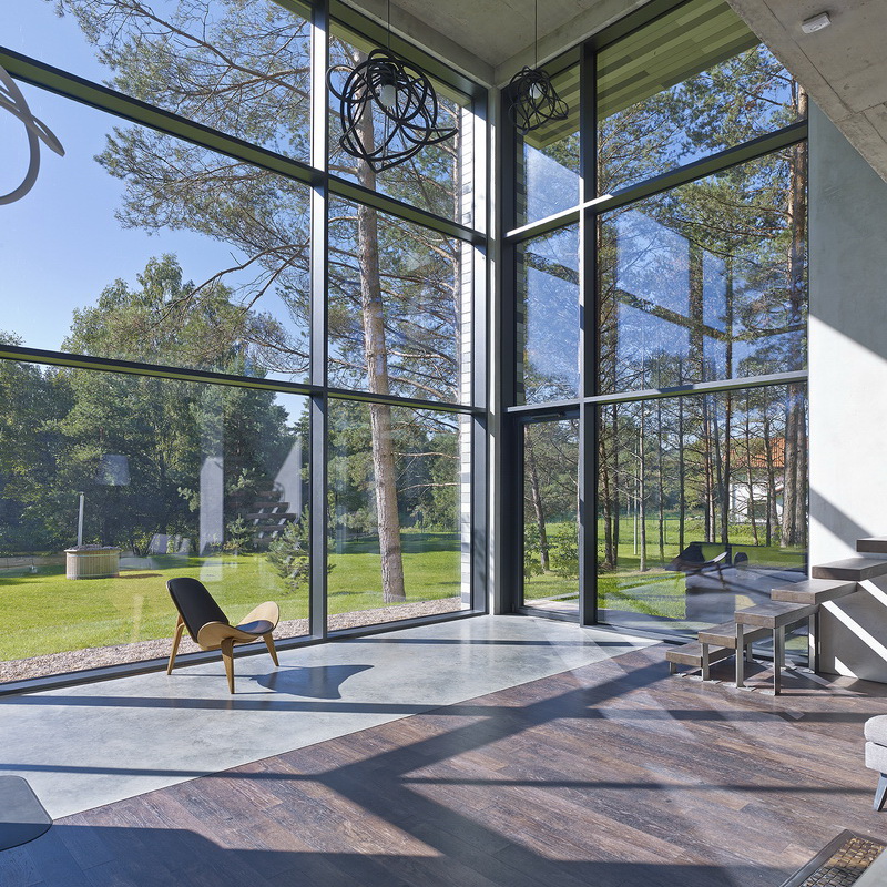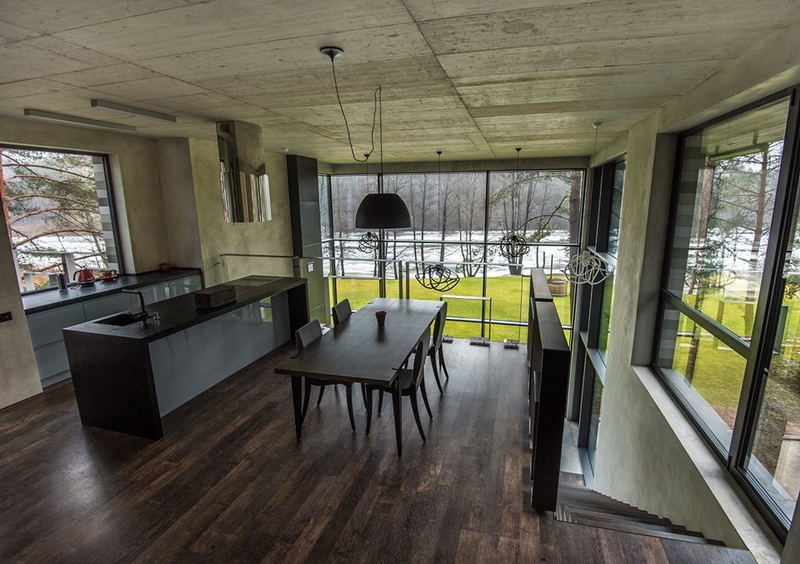 Основными задачами для архитекторов стало сохранение деревьев, растущих вокруг дома, и создание пространства, внутри которого возникало бы ощущение, что ты живёшь в лесу на берегу реки (рядом с домом протекает река Нерис).