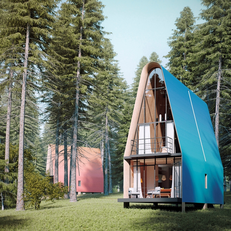 Ширина домиков намеренно уменьшена, чтобы они вписались в пространство между деревьями.